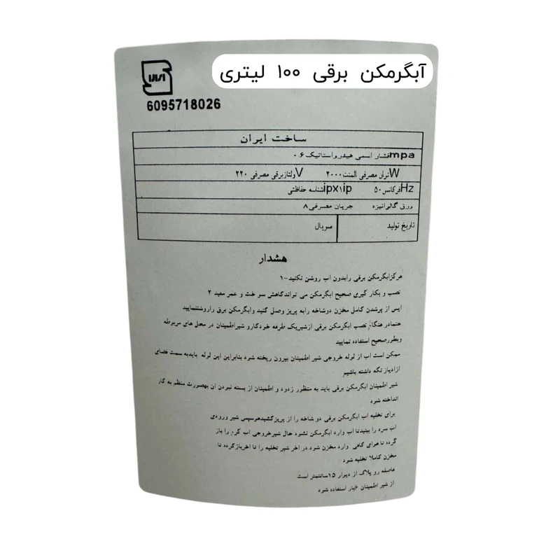 آبگرمکن برقی دیواری 100 لیتری تکسان